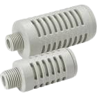 Yüksek gürültü azaltma stiline sahip ANA1 susturucu, 40 dB(A) gürültü azaltma etkisiyle tesis içindeki gürültü seviyesini 85 dB(A)’nın altında tutar. ANB1 Serisi, 38 dB(A) gürültü azaltma etkisine ve ANA1 Serisi ile aynı port boyutuna sahip daha geniş bir etkin alana sahiptir. Ayrıca, manifoldlardan gelen ortak egzozlar için de mevcuttur.