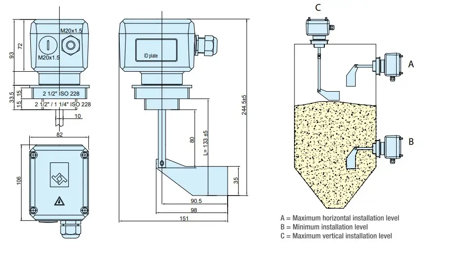 - ILT tipi Silo Seviye Göstergeleri, silo, bunker veya siloların içindeki minimum veya maksimum malzeme seviyesinin döner hareketle elektrikle sinyallenmesi için tasarlanmıştır.
