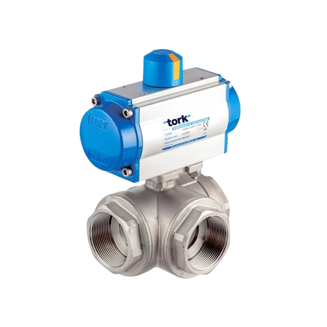 TORK-PAV904 Serisi : Paslanmaz gövdeli, dişli bağlantılı, üç yollu küresel vana