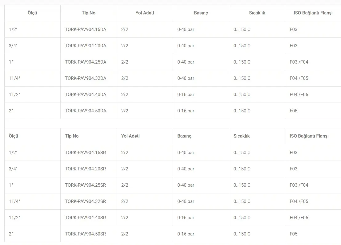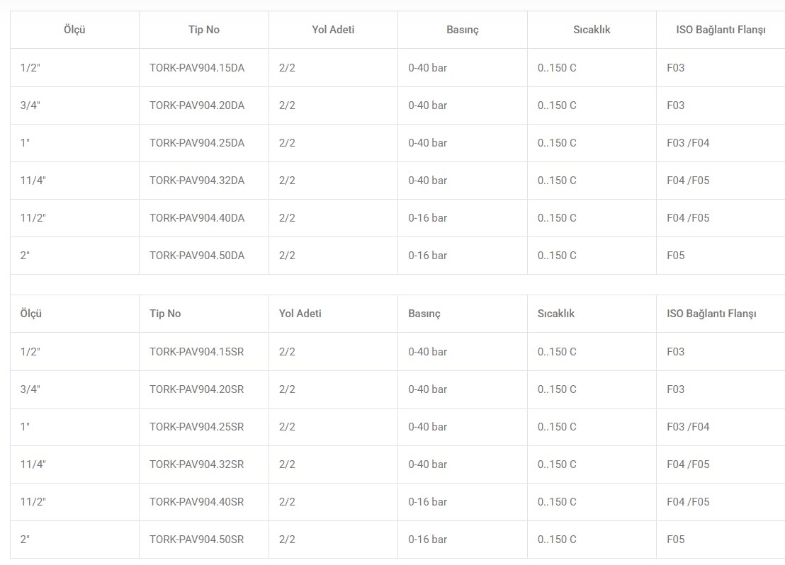 Çalışma basıncı : PN 40 bar (1/2″..11/4″) , 16 bar(11/2″…3″)
